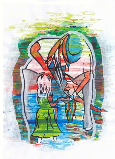 De pop probeert het meisje te wekken