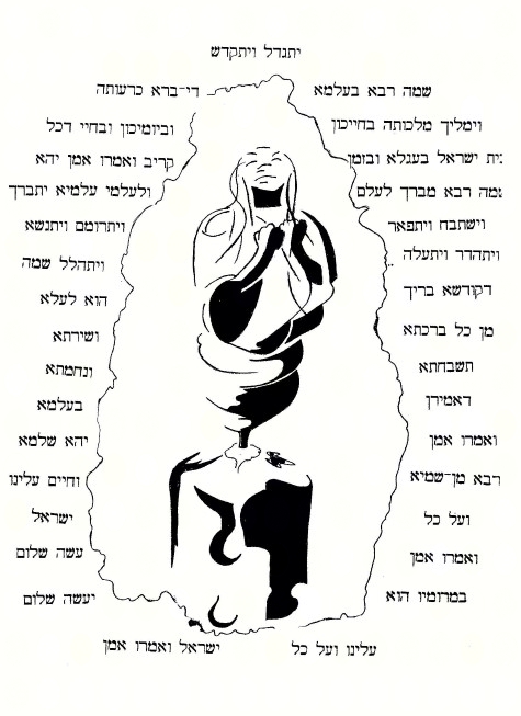 Een tekening die ik gemaakt heb bij de verhalenbundel van mijn moeder. Het is de enige tekening waarbij ik geïnspireerd ben door een andere kunstenaar t.w. Nathan Rapoport. De beeltenis is het beeld van Job. U kunt dit beeld vinden in Yad Vashem en beeldt uit het lijden van het Joodse volk. Soms probeer je dingen in woorden uit te drukken maar schieten woorden te kort. Dan zie je iets wat eigenlijk alles vertelt wat je zou willen uitdrukken. Dus hoewel de tekening eigenlijk in de bundel thuishoort, wil ik hem u niet onthouden. Het is een tekening die je adem even doet stokken net als de woorden van het gedicht.